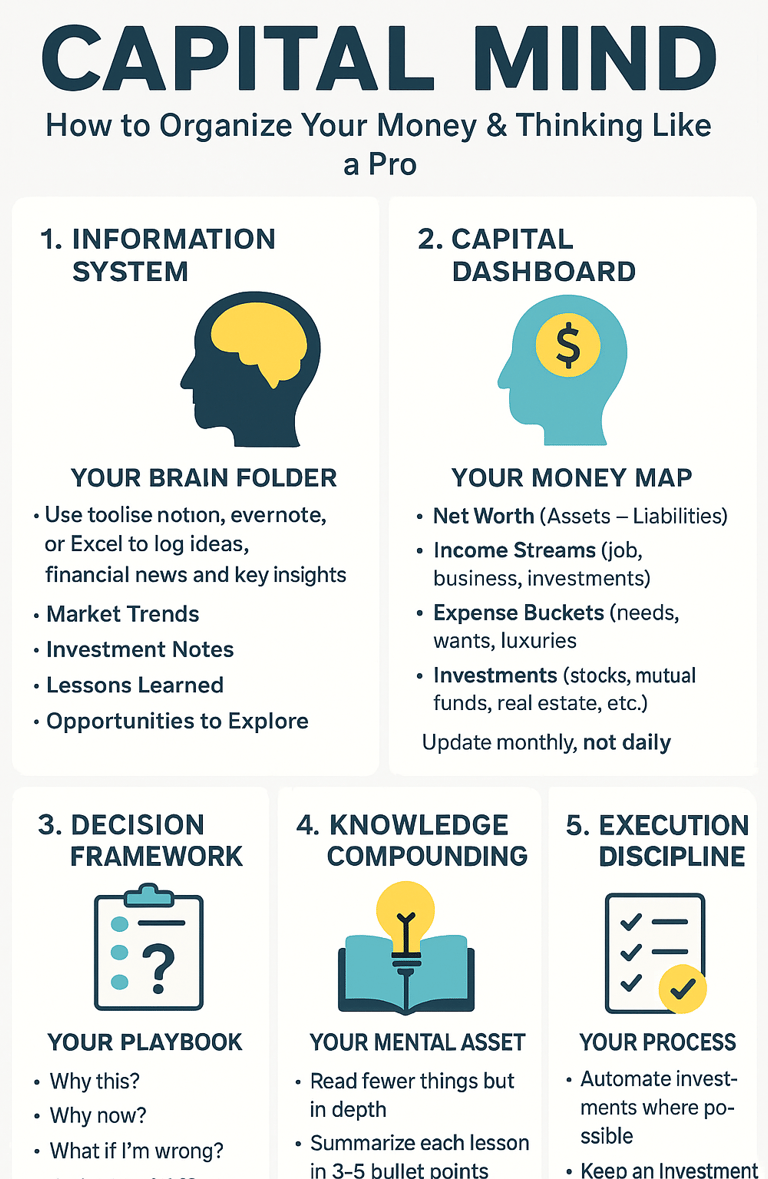 Discover how to build a "Capital Mind"—a professional system to organize money, decisions, and financial growth. Learn principles, tools, and steps to think like a pro investor.
