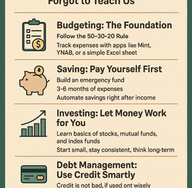 We spent years solving equations, memorizing dates, and writing essays—but no one taught us how to file taxes, create a budget, or manage debt. That missing subject is called Financial Literacy, and it’s the education system’s biggest blind spot.