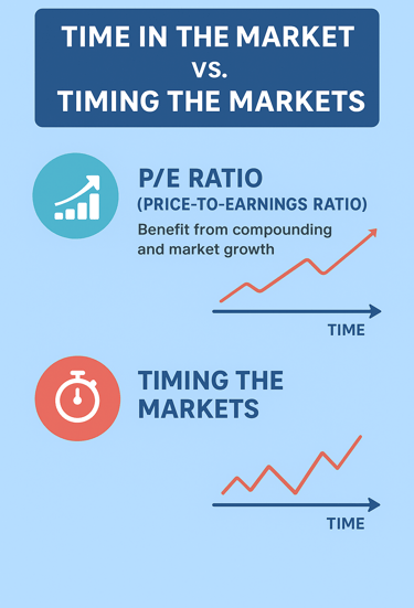Time in the market refers to staying invested over long periods — regardless of market ups and downs.