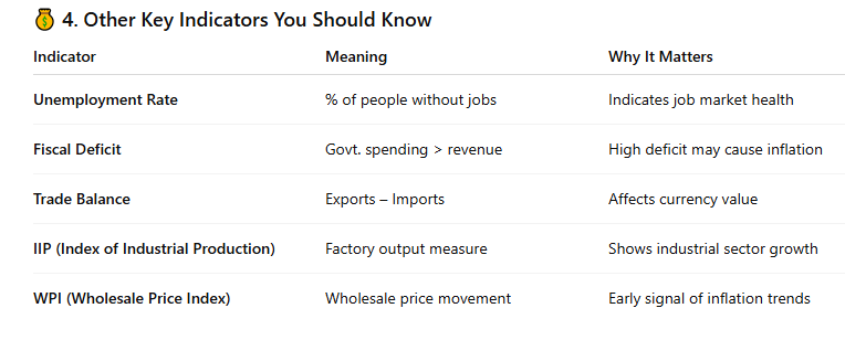 They’re like a “health report” for the economy — showing how fast it’s growing, how expensive life is getting, and how stable money supply remains.