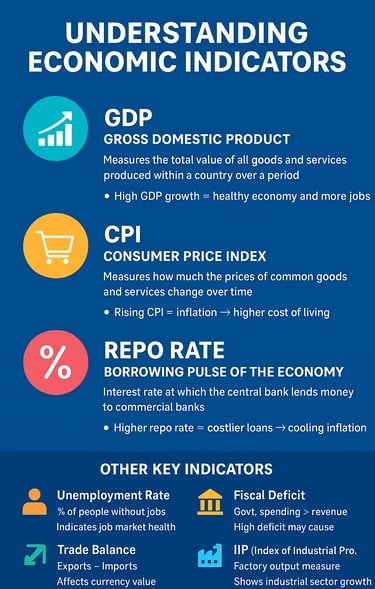 #Finance101 #EconomicIndicators #GDP #CPI #RepoRate #FinancialLiteracy #SmartInvesting